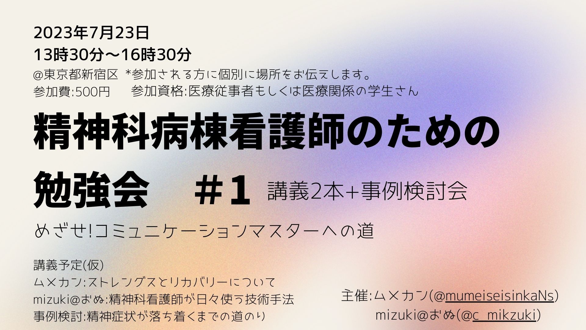 みなさん、はじめまして。精神科看護師の勉強会「re-flective」です。この勉強会は精神科領域で働いている看護師を中心に運営しています。勉強会の開催は年4回程度行っております。